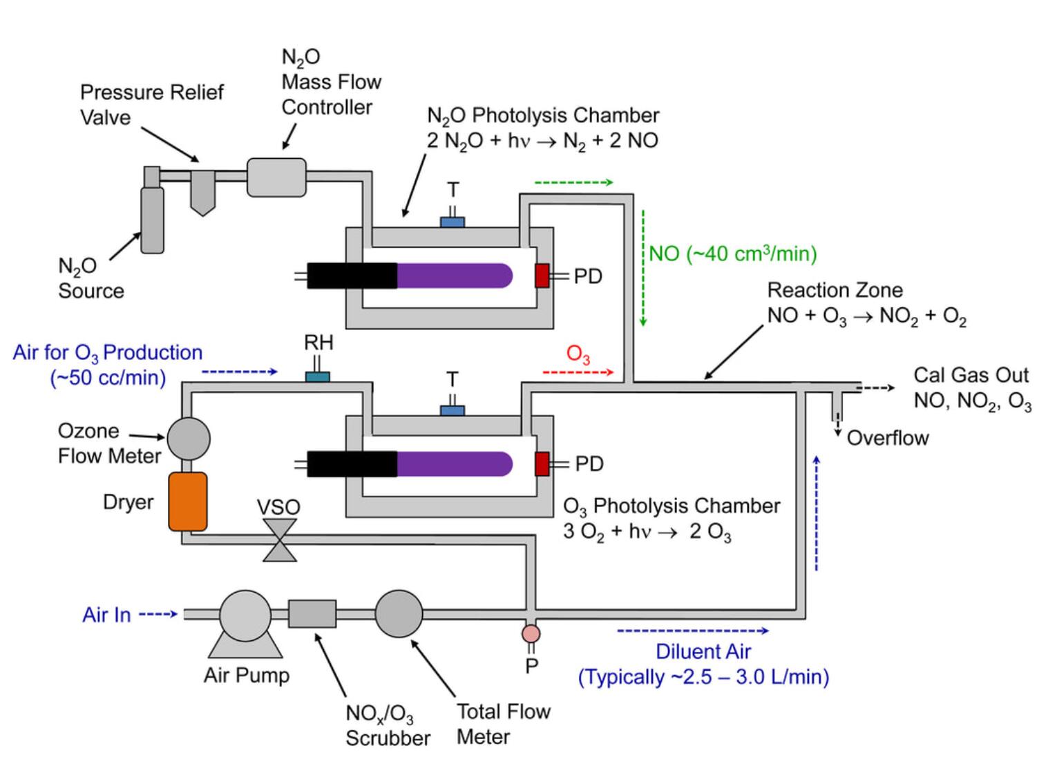 美國2B 714 型 NO2 /NO/臭氧校準(zhǔn)源™工作原理