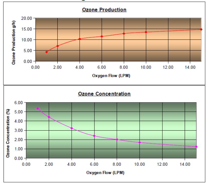 臭氧產量通常以g/hr表示,但也可以以mg/hr, lb/day或其他測量單位表示。 臭氧產量值必須以質量隨時間變化的值顯示,該值表示在給定時間段內產生的臭氧質量。該值是基于臭氧濃度和原料氣流速的計算值。