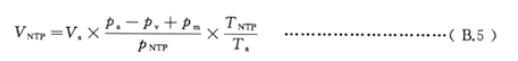 B.2.6.1 溫度壓力修正后的氣體體積計算式為式(B.5)。