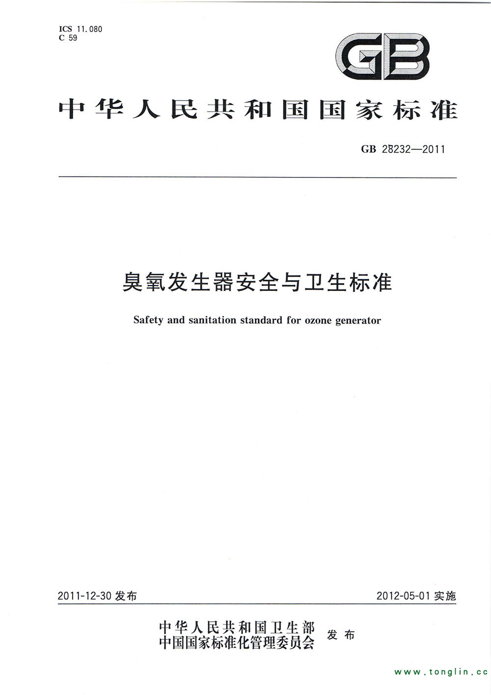 中文標準名稱: 臭氧發(fā)生器安全與衛(wèi)生標準
